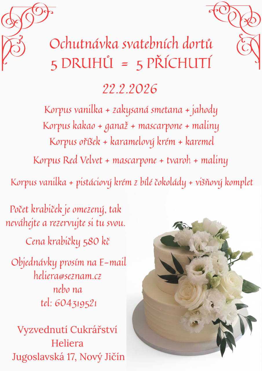 Ideální doba pro zajíštění dortů,koláčů a dalšího cukroví je alespoň 2 měsíce předem.
